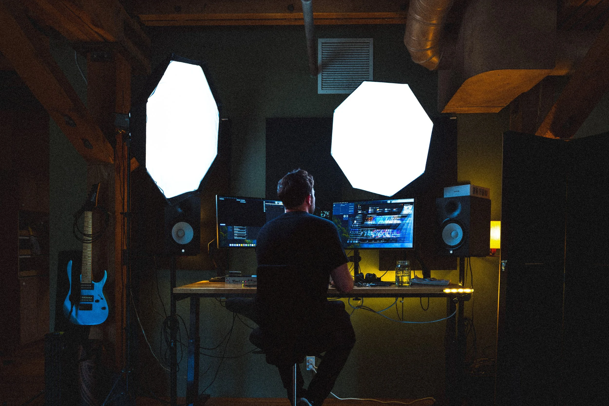 Environmental context that reveals your working reality: Your studio, office, workshop, or field becomes part of the story